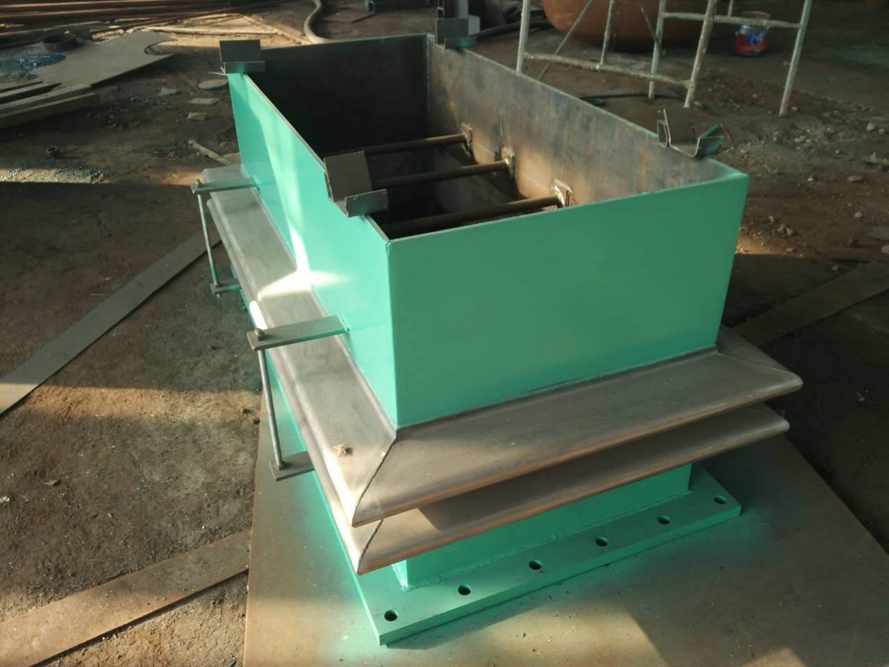 8、矩(方)形三波補償器對用于氣體介質(zhì)的膨脹節(jié)及其連接管道,作水壓試驗時,要考慮充水時是否需要對膨脹節(jié)的接管加設(shè)臨時支架 以承重。